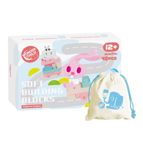 媽媽友𝕞𝕒𝕞𝕒𝕪𝕠🤝🏼馬卡龍軟積木-42入(新款小車車、附收納袋)