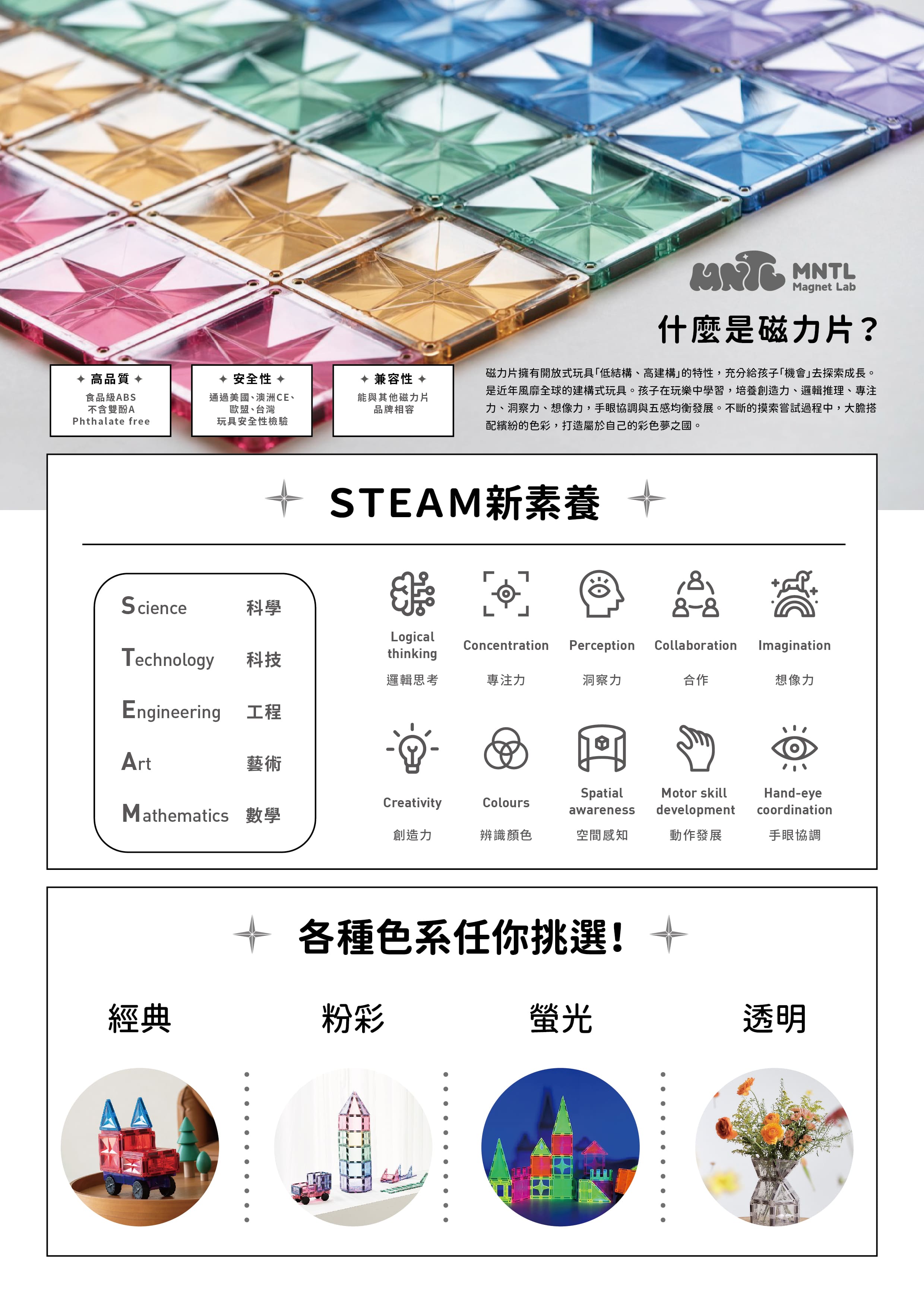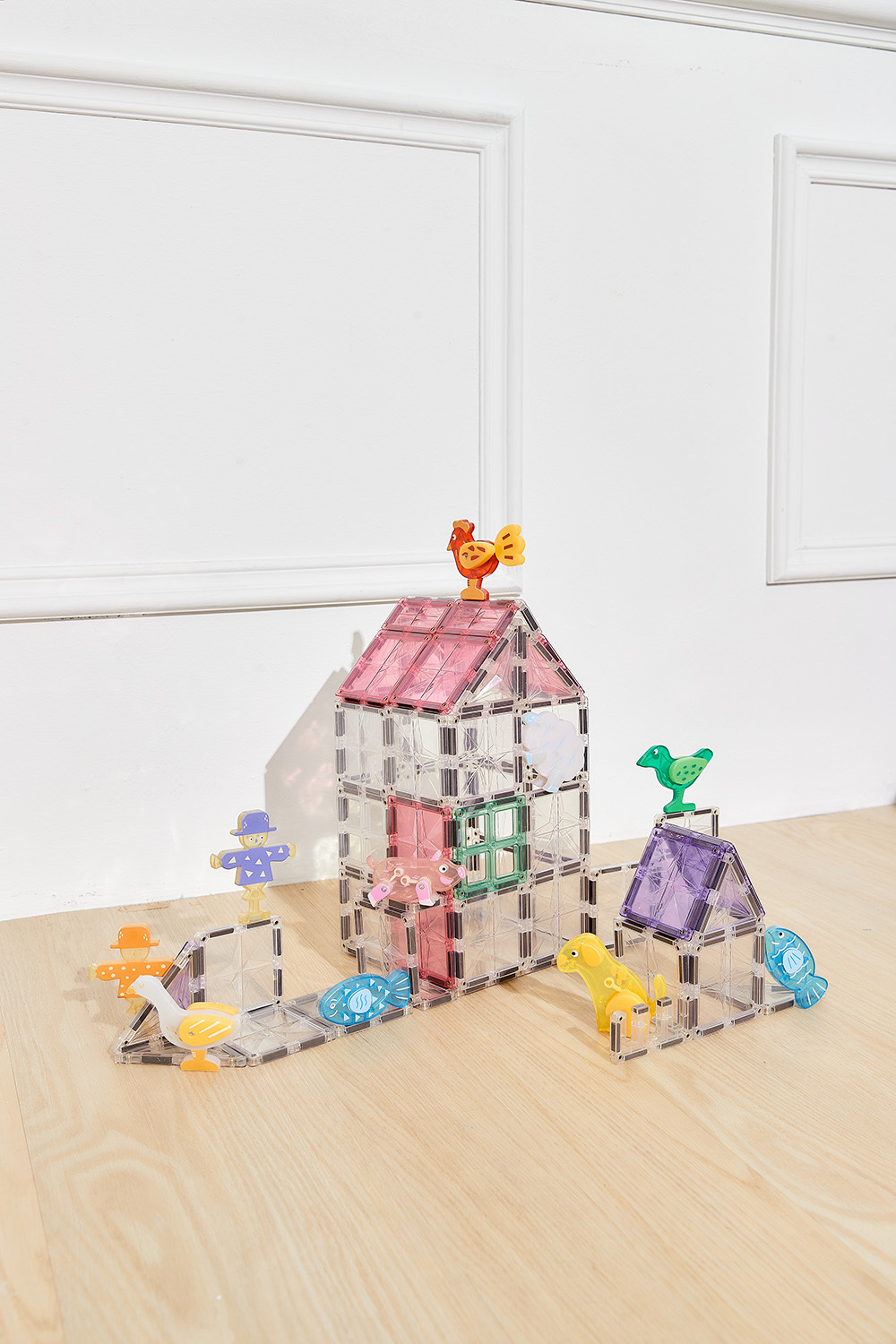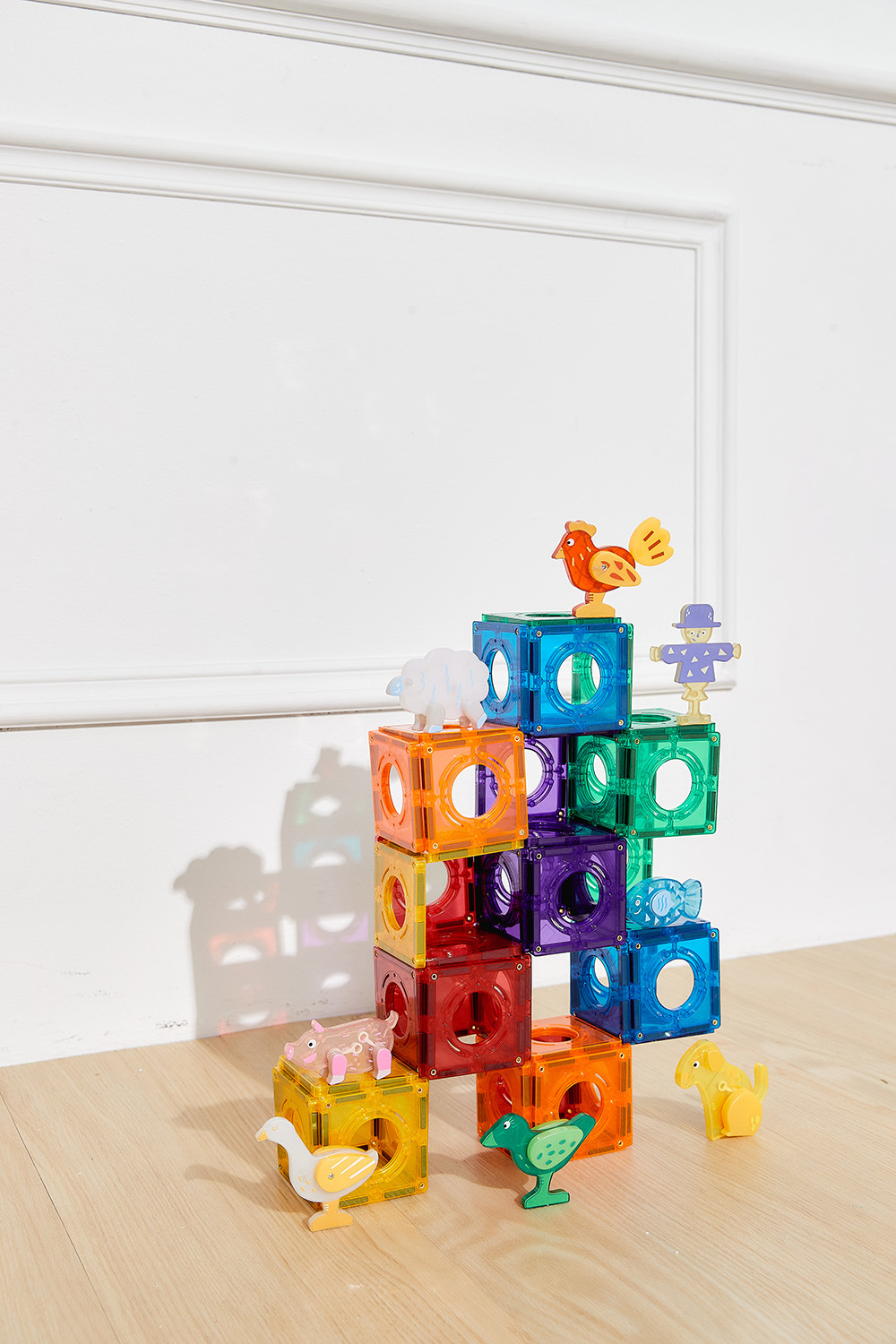 可愛的磁力小動物動物們與稻草人在磁力世界裡的生活,發生了哪些好玩的事呢~一起用磁力片創造動物們的房子,讓故事接續下去吧!動物公寓除了一樣有磁吸力的特點外,關節處還可以轉動,會有療癒的咔咔聲喔。