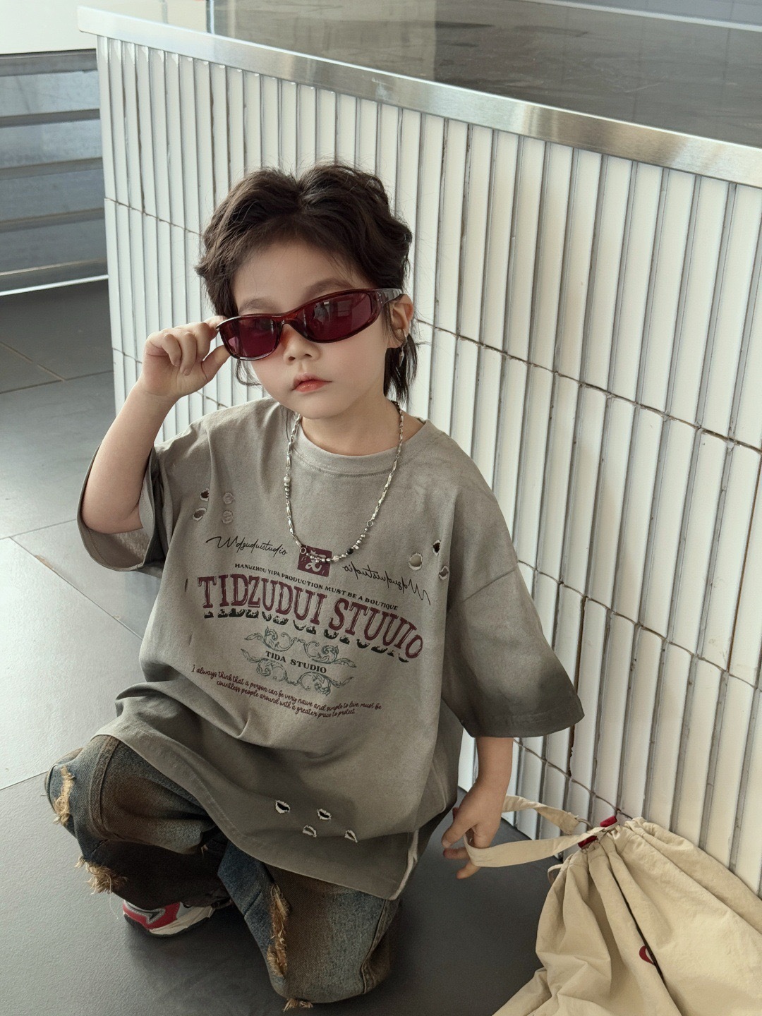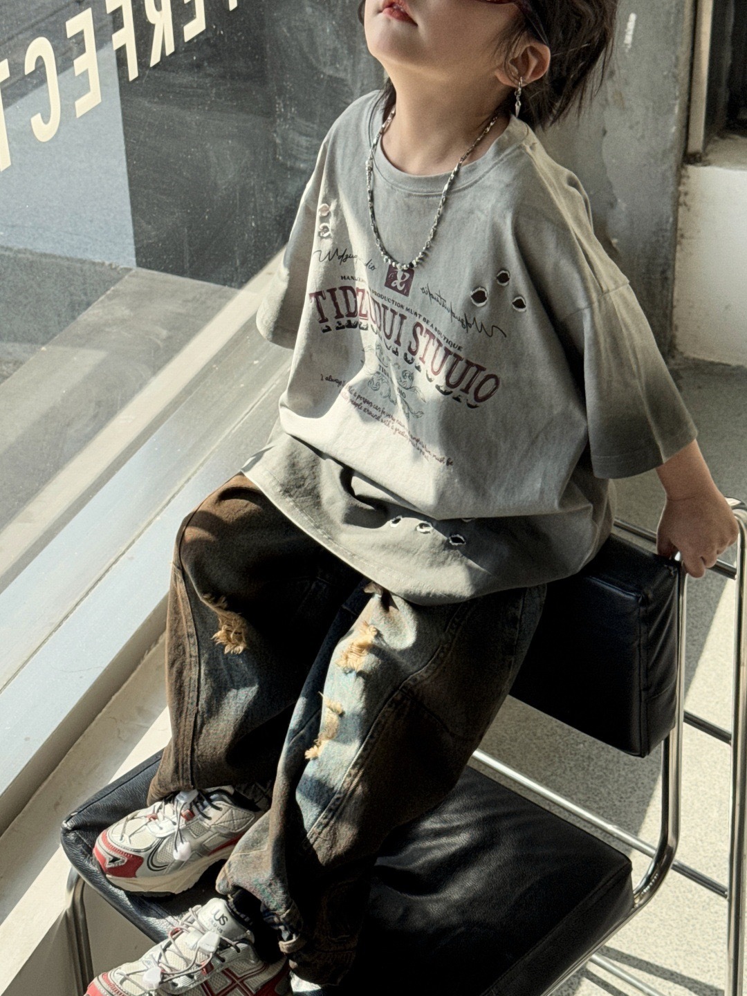 孟糸𝑴𝒆𝒏𝒈𝒎𝒆 x 美式復古噴染破洞T-shirt